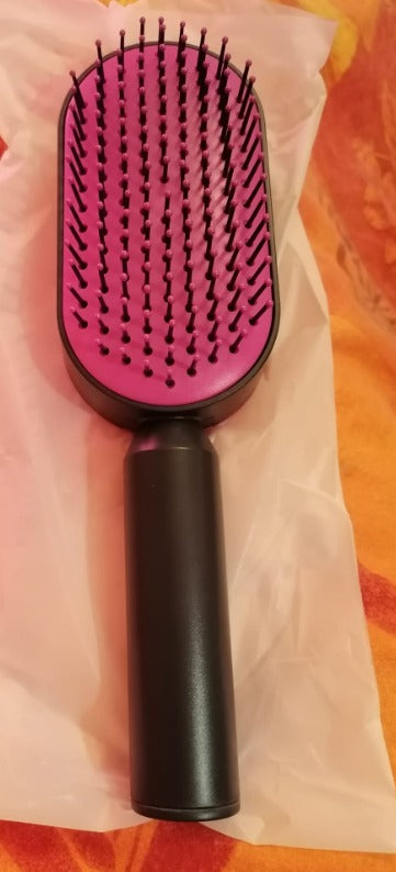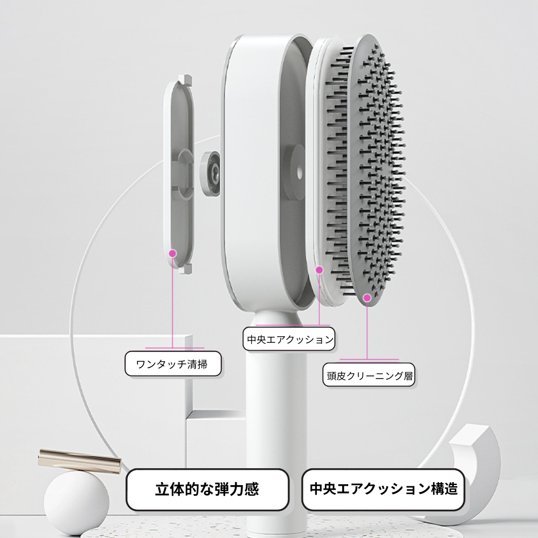 ボタンを押すだけで、たまった髪の毛をスッとオフ。毎回、清潔な状態をキープできます。 - 🌿 髪にやさしい柔らかブラシ