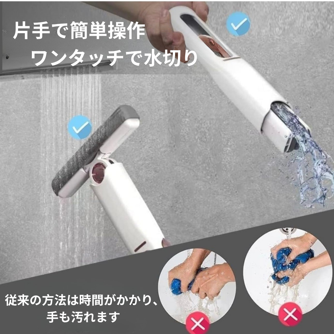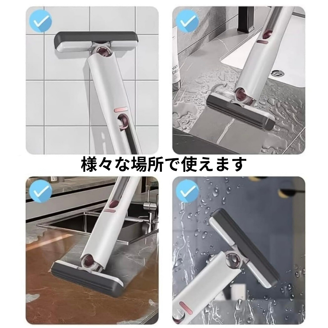 ワンタッチで水が絞れる構造に加え、高吸水コロジオンスポンジ(PVA) を使用。面倒な拭き掃除を、かがまず、手を汚さず、短時間で済ませることができます。