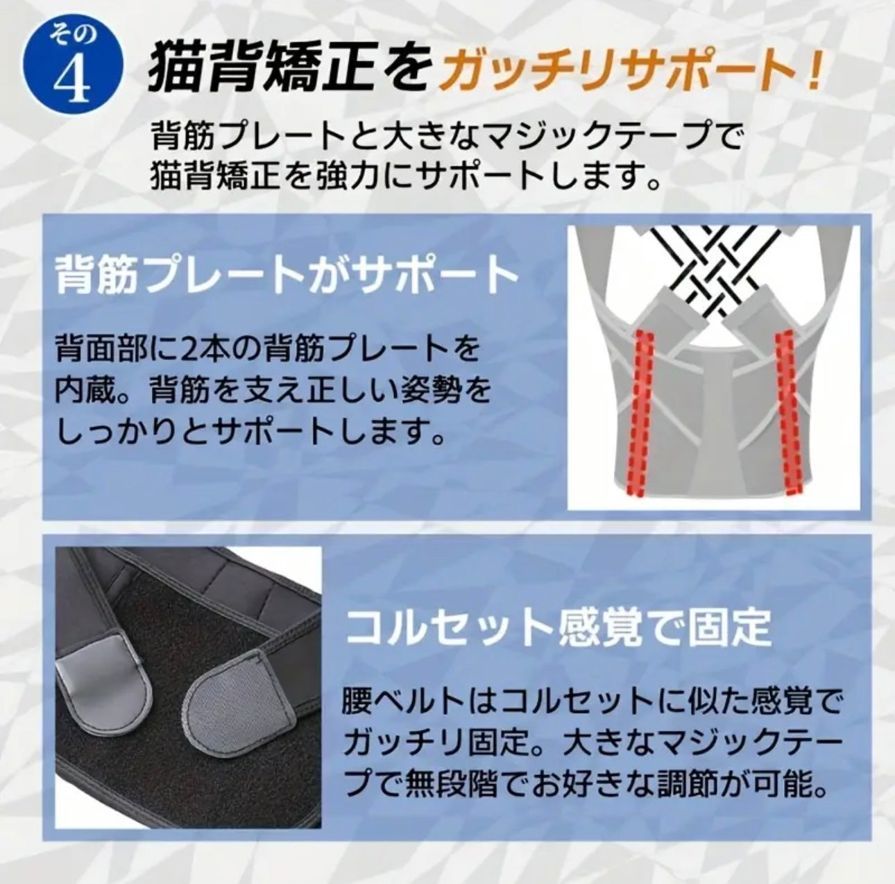 はい。内部のダブルボーンが背筋を安定させ、肩や腰への負担を軽減します。実際に「肩の重さが楽になった」「腰の圧迫感が和らいだ」といった声をいただいています。